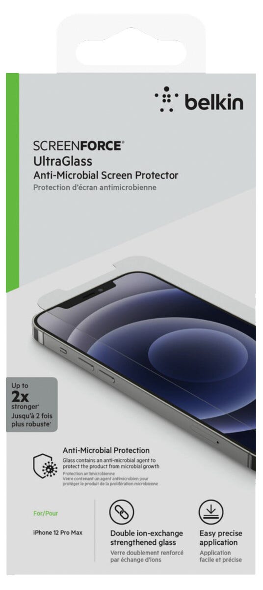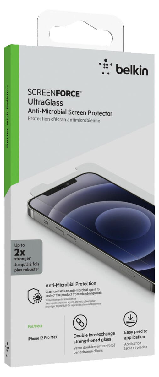 • Belkin UltraGlass displayskydd för iPhone 12 Pro Max.
