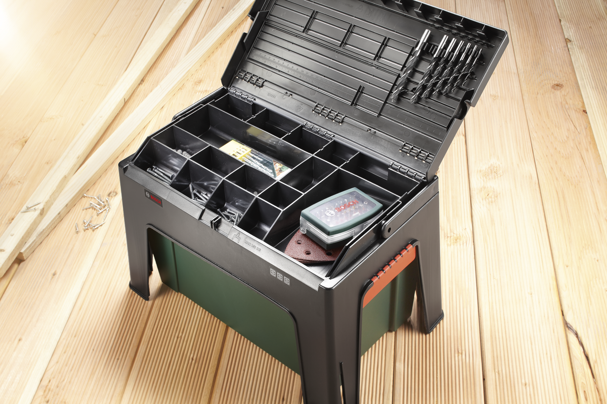 • Step & Workbox är en praktisk förvaringsbox och pall - allt i ett.
