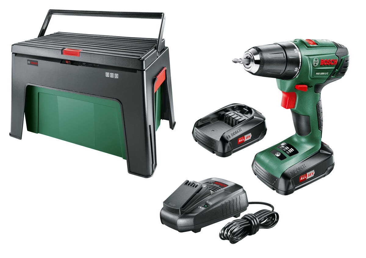 Skruvdragare Bosch PSR 1800 LI-2 med Step & Workbox