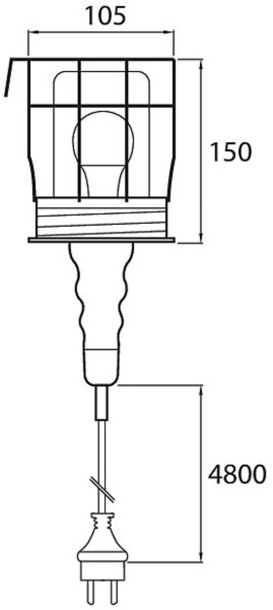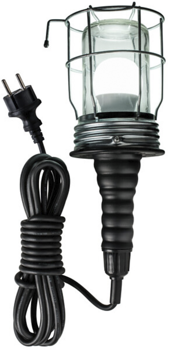 • Handlampa med krok för upphängning och 5 m lång gummikabel med stickpropp.