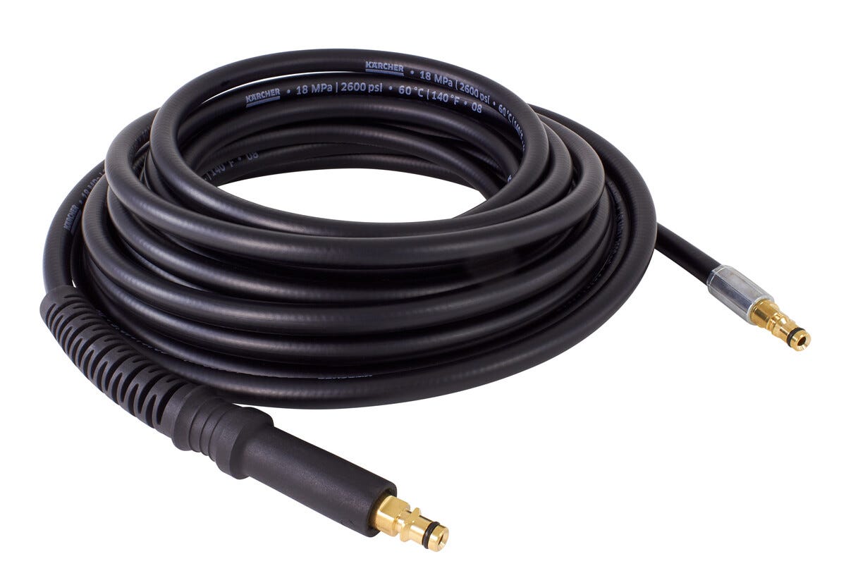 10 m slang till Kärcher högtryckstvätt med Quick Connect-snabbkopplingssystem. Ersätter slangar av kortare längd för slangvinda.