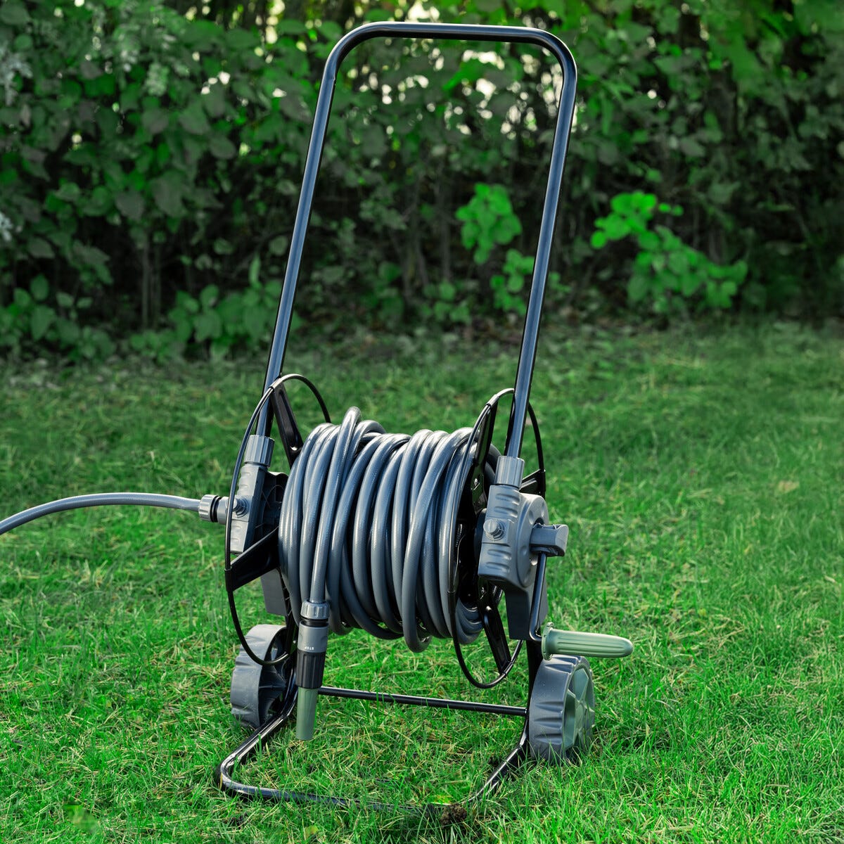 • Smidig slangvinda på hjul – lätt att rulla ut och veva in.