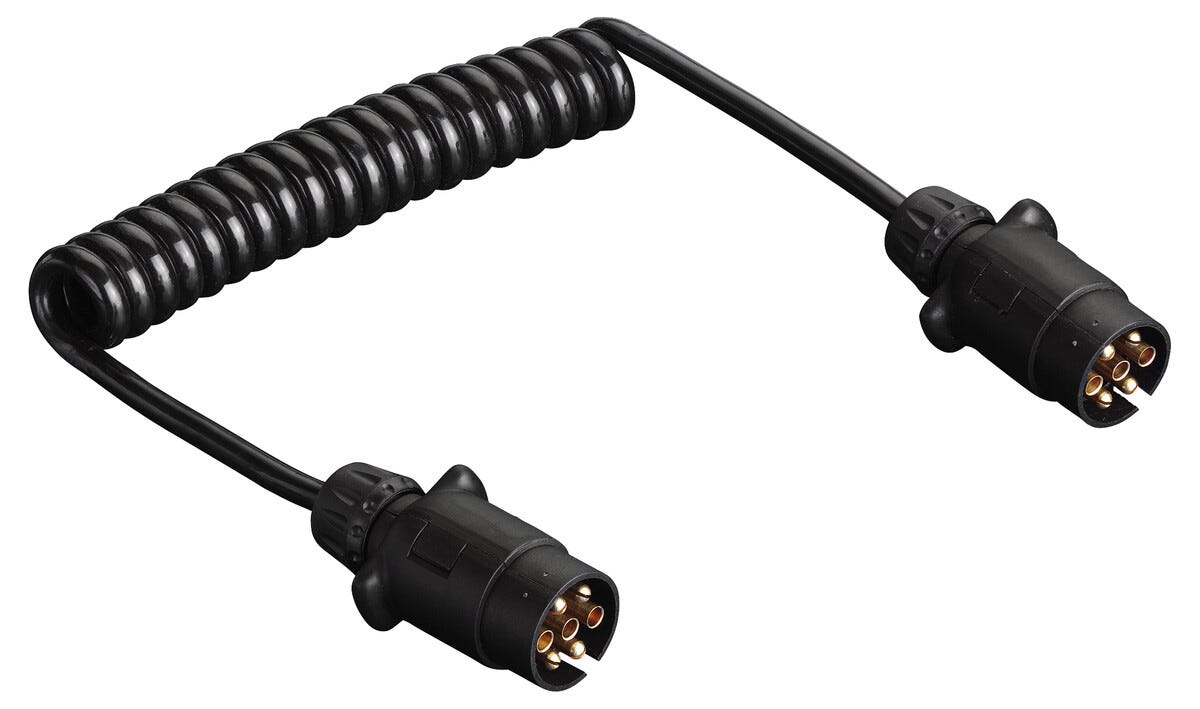 • Klassisk spiralkabel för strömförsörjning mellan bil och släpvagn.