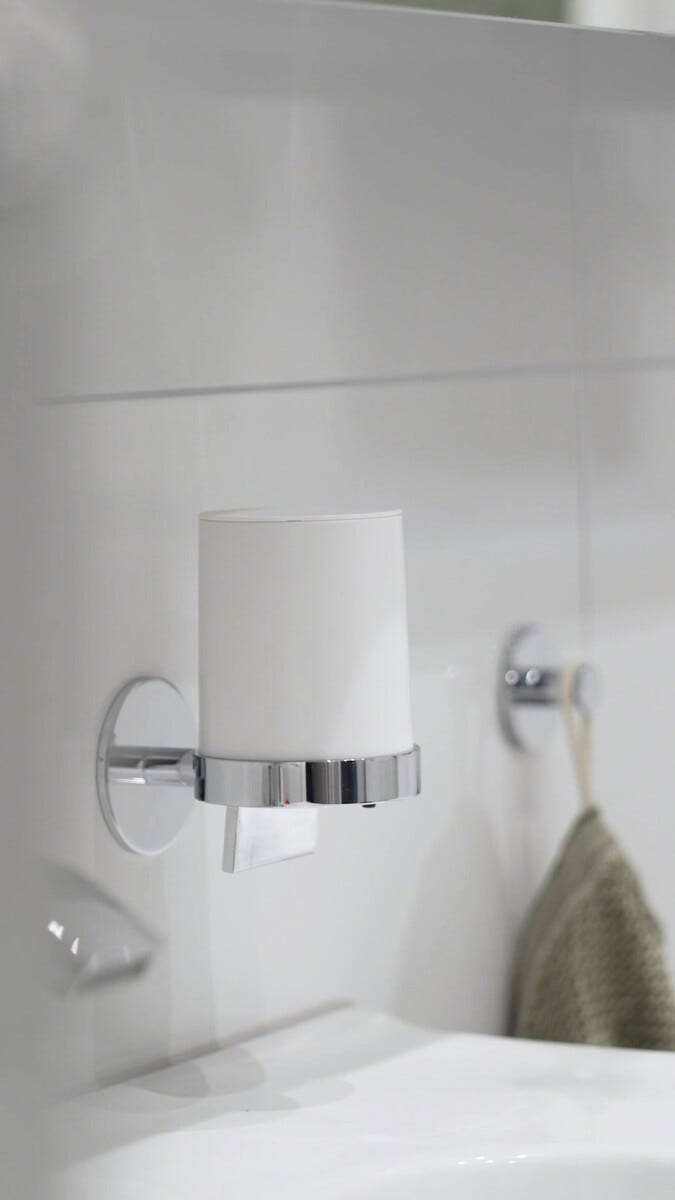 • Väggmonterad tvålautomat – fäst med tejp på kakel eller klinkers.