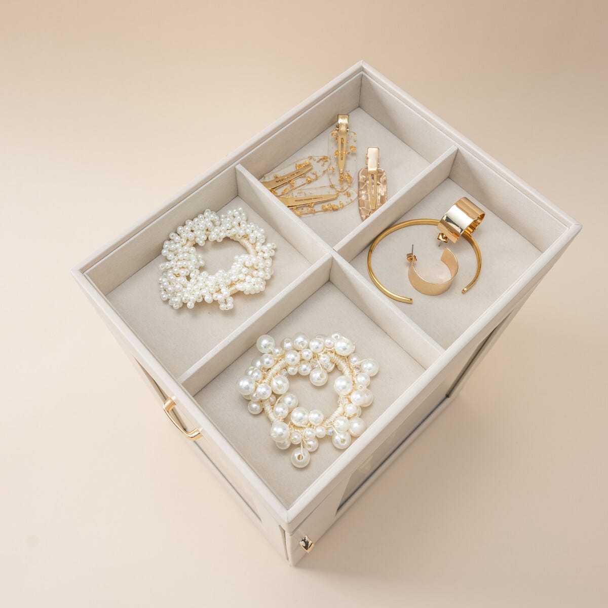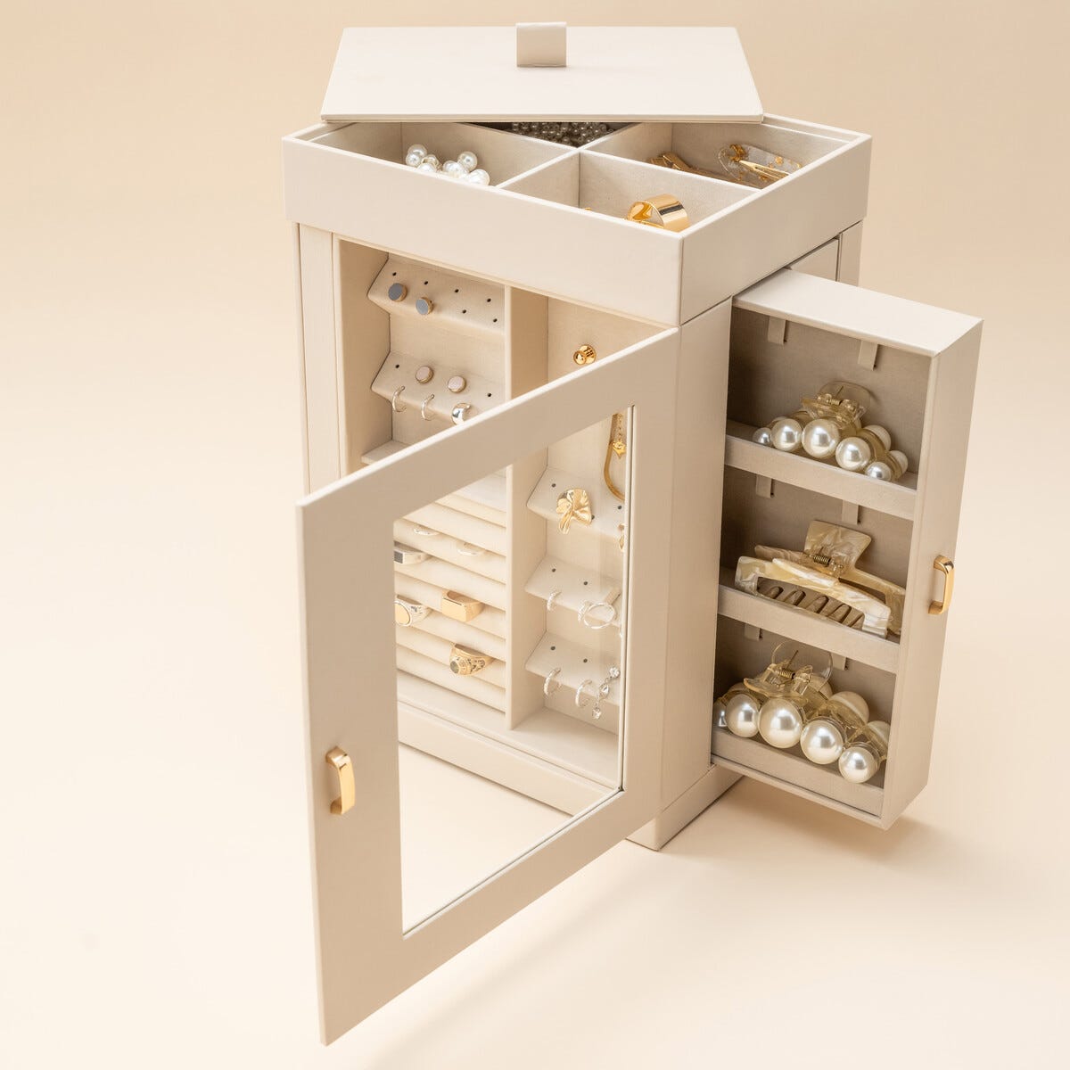 • Snurrbart smyckeskrin – lätt att sortera med utdragbara fack med krokar, lådor och fack.