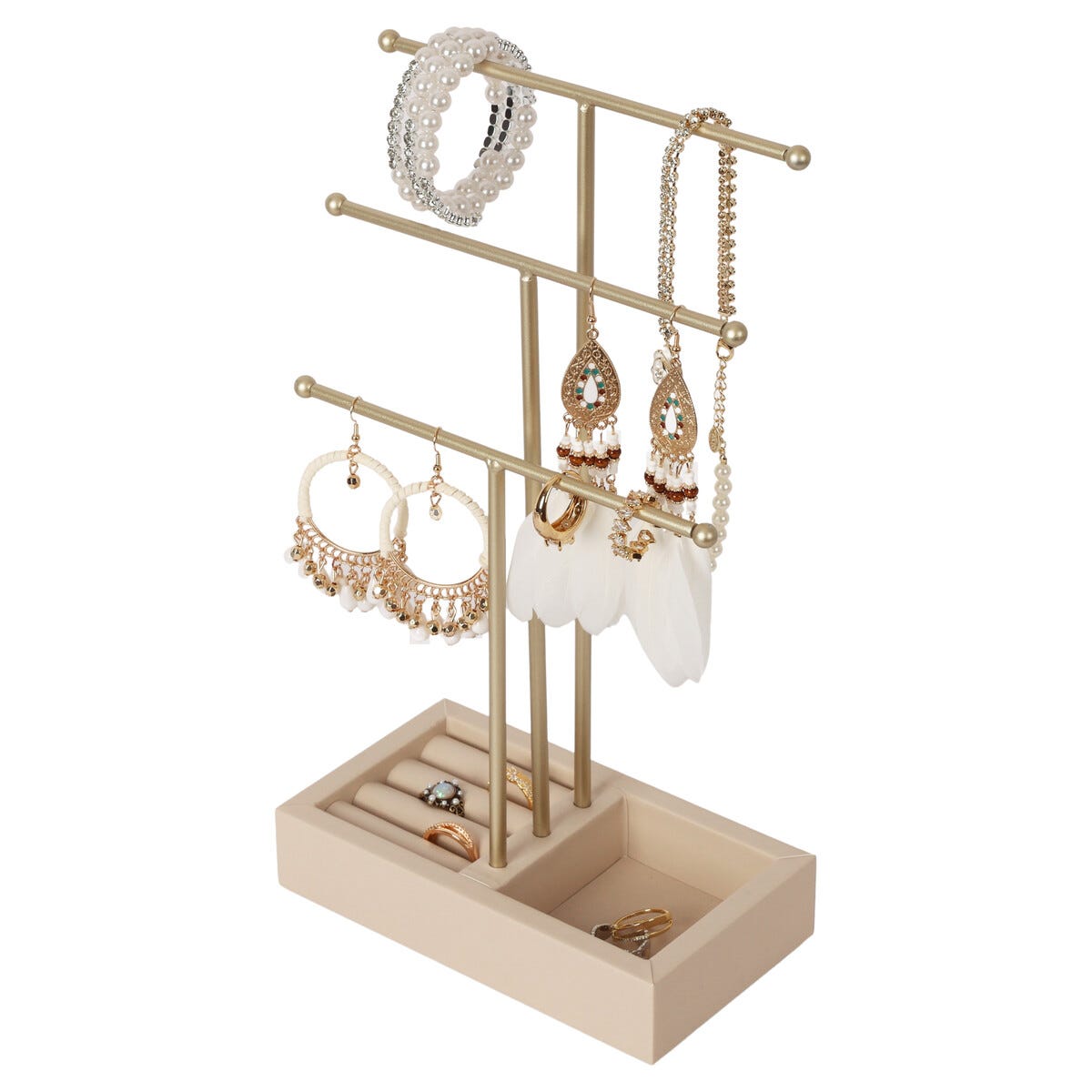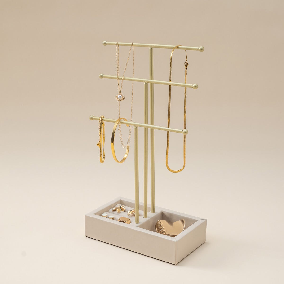 • Elegant smyckesträd i guldfinish – står stadigt på byrå eller bord.