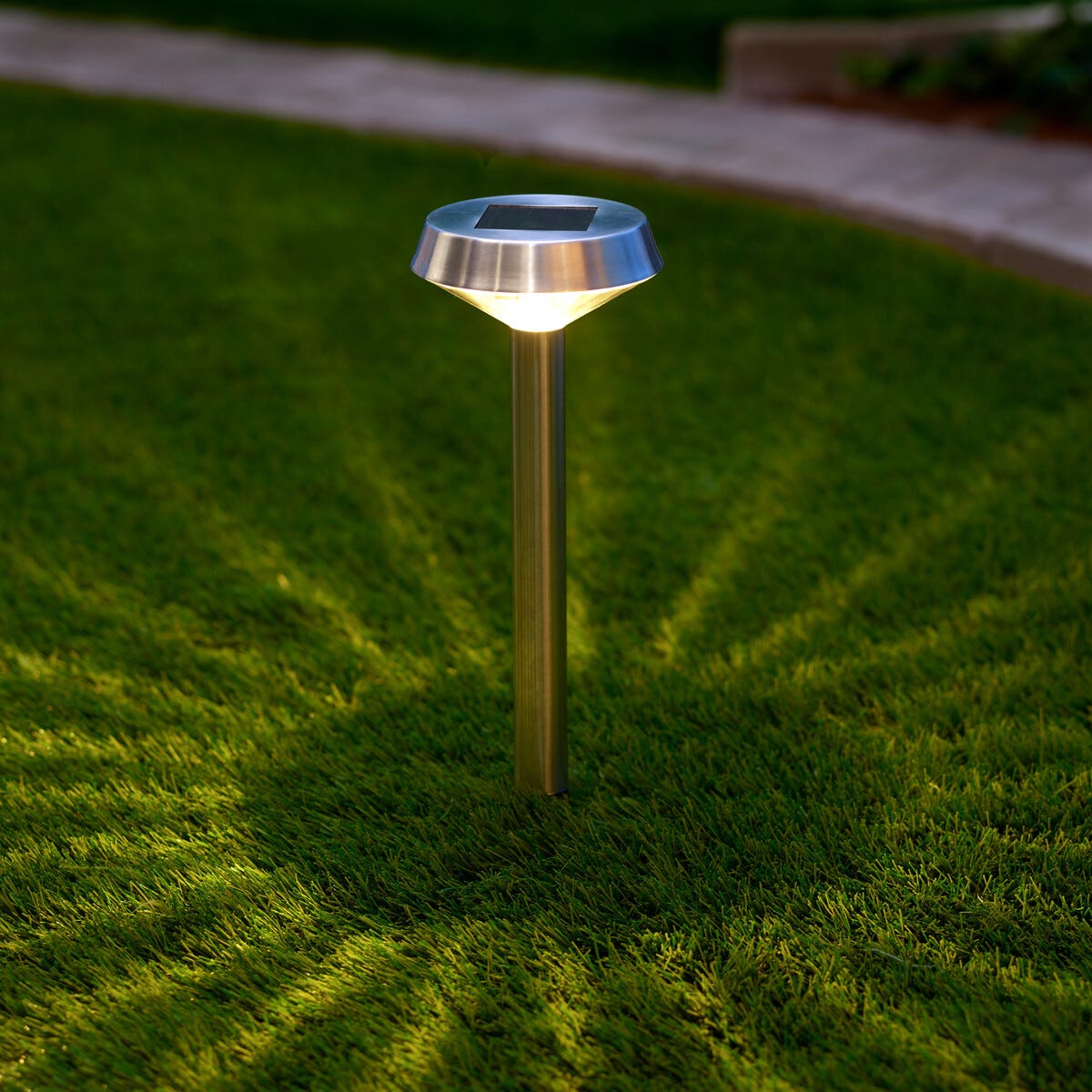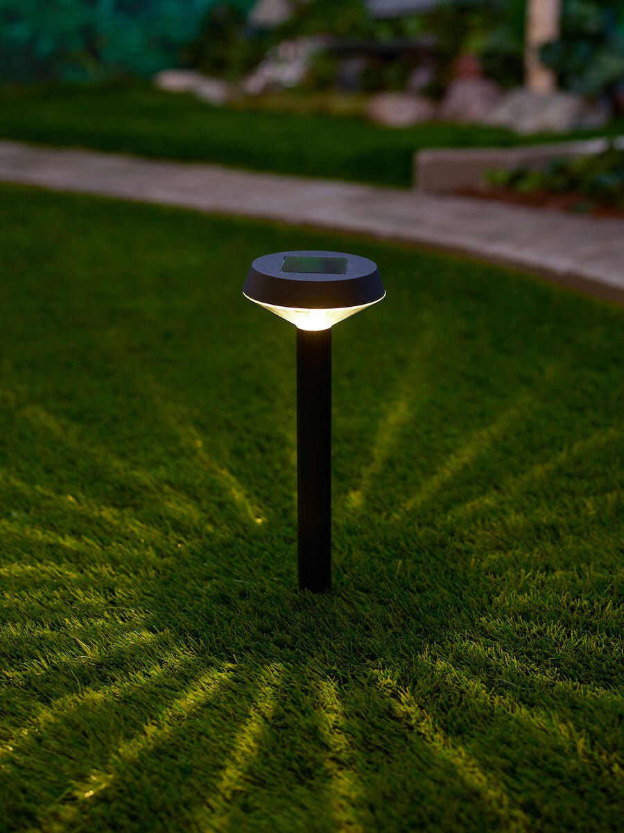 • Lättskött solcellslampa med markspjut – tänds automatiskt vid skymning.