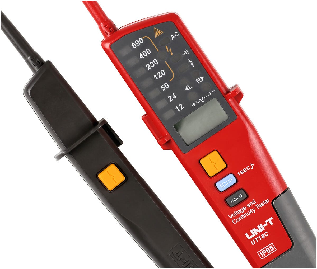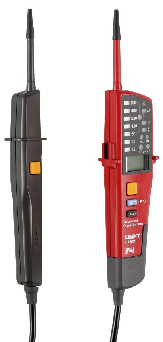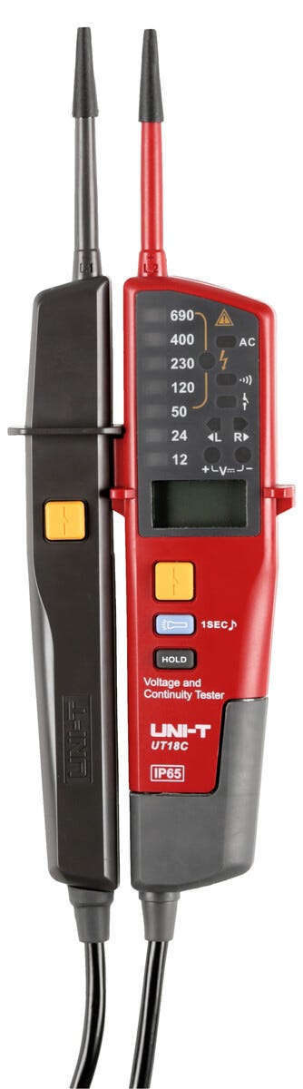 • Spänningsmätning, enpolig fasprovning, polaritetstest och kontinuitetstest.