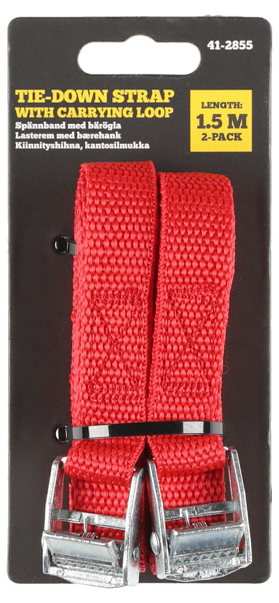 Spännrem med bärögla 18 mm x 1,5 m röd, 2-pack