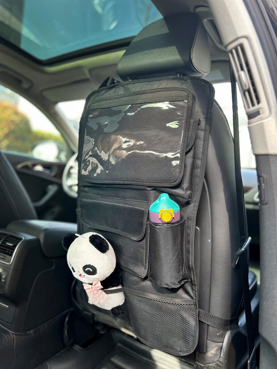 • Sparkskydd, sätesskydd barn för bil, med förvaring – för framsätets baksida.