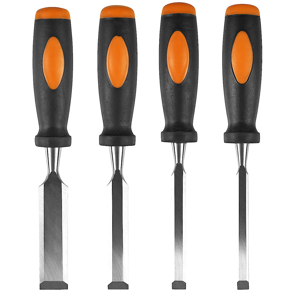 • Fyra rejäla stämjärn med handtag av slagfast plast.
