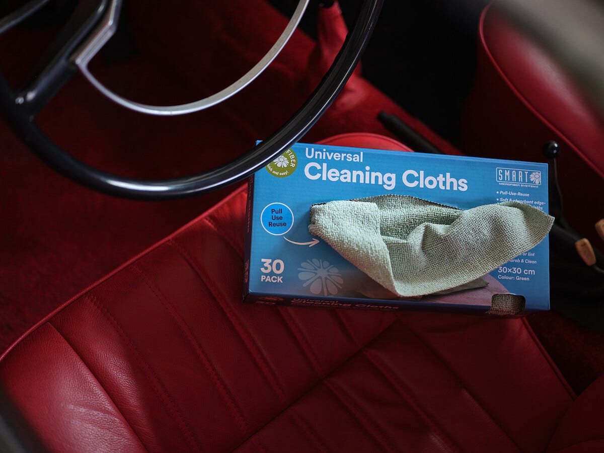 • Storpack rengöringsdukar i mikrofiber, märkta med Oeko-Tex.