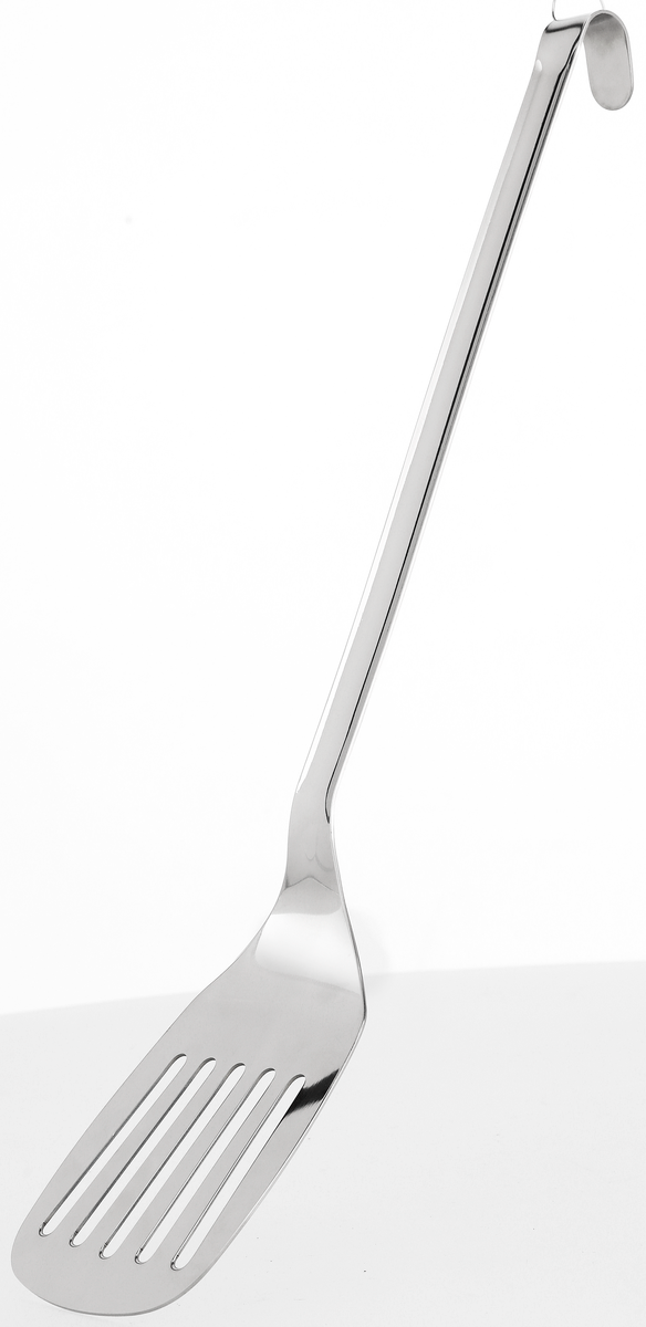 • Stadig och tålig stekspade i rostfritt stål med brett blad och långt skaft.