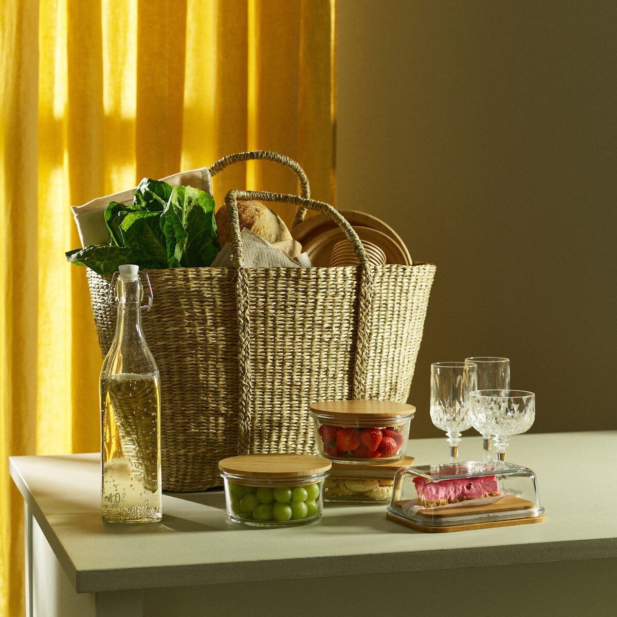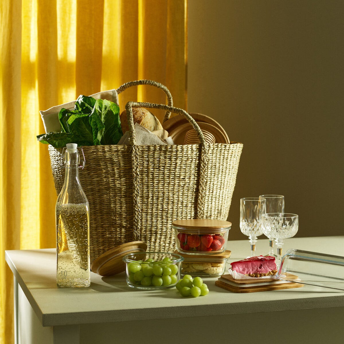 • Rymlig design i naturmaterial med handtag – lätt att bära och matcha.