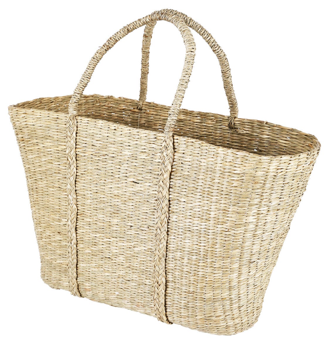 • Stor strandväska i flätat strå av sjögräs – väska med ett stort fack.