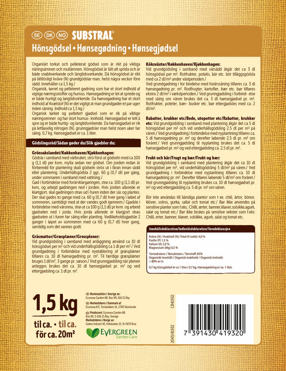 • Substral hönsgödsel – rikt på näringsämnen och mullämnen.