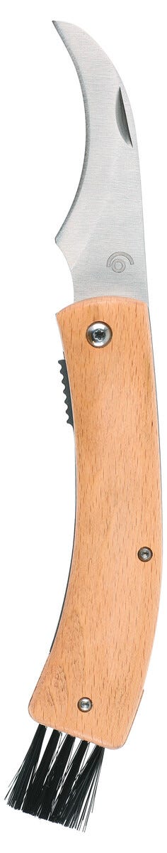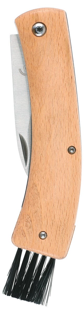 Svampkniv med borste, fällbar med träskaft