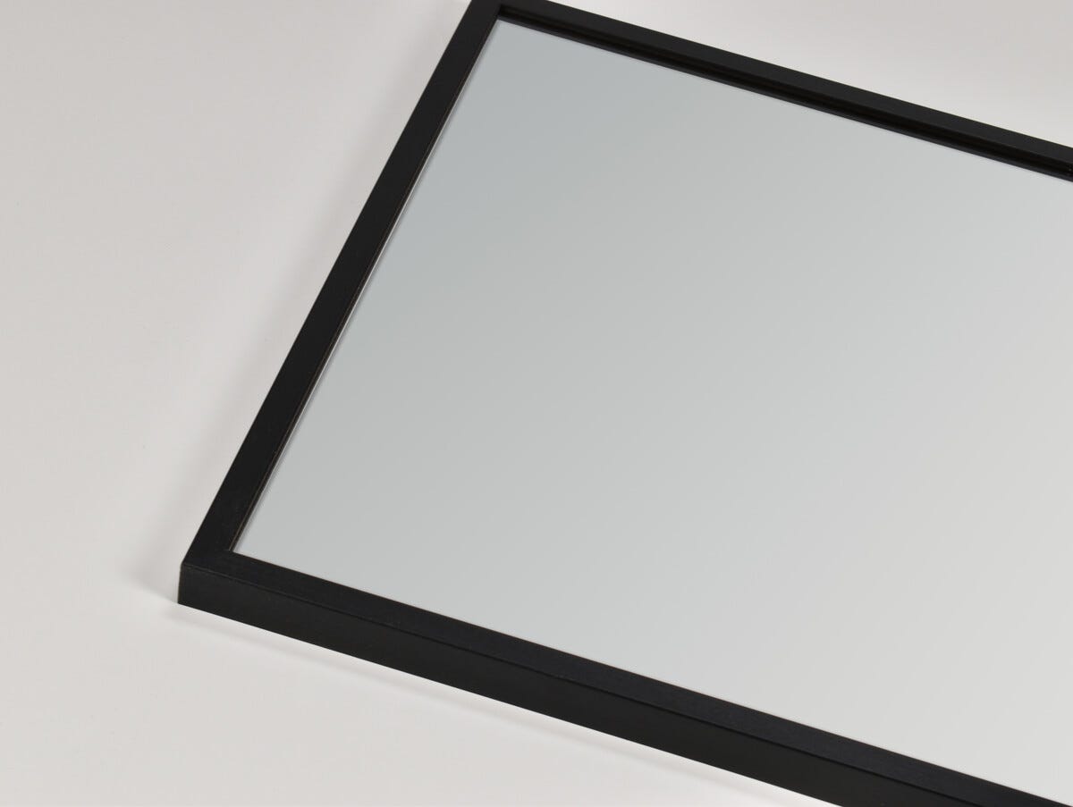 • Avlång väggspegel med svartmålad träram i robust MDF.