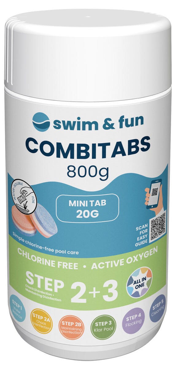 • Swim & Fun Combi Tabs – poolrengöring mot kalk- och mineralutfällningar.