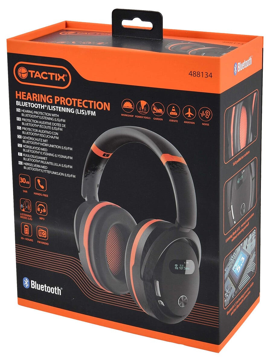 • Tactix hörselskydd med Bluetooth – streama musik och prata handsfree.