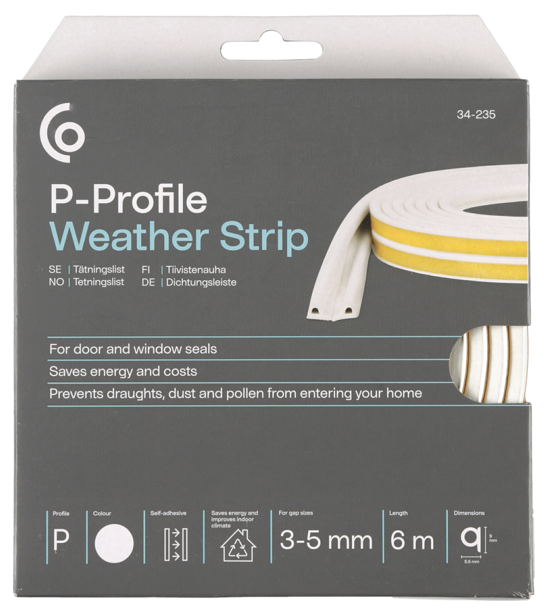 • Lättanvänd tätningslist P-profil med självhäftande tejp.