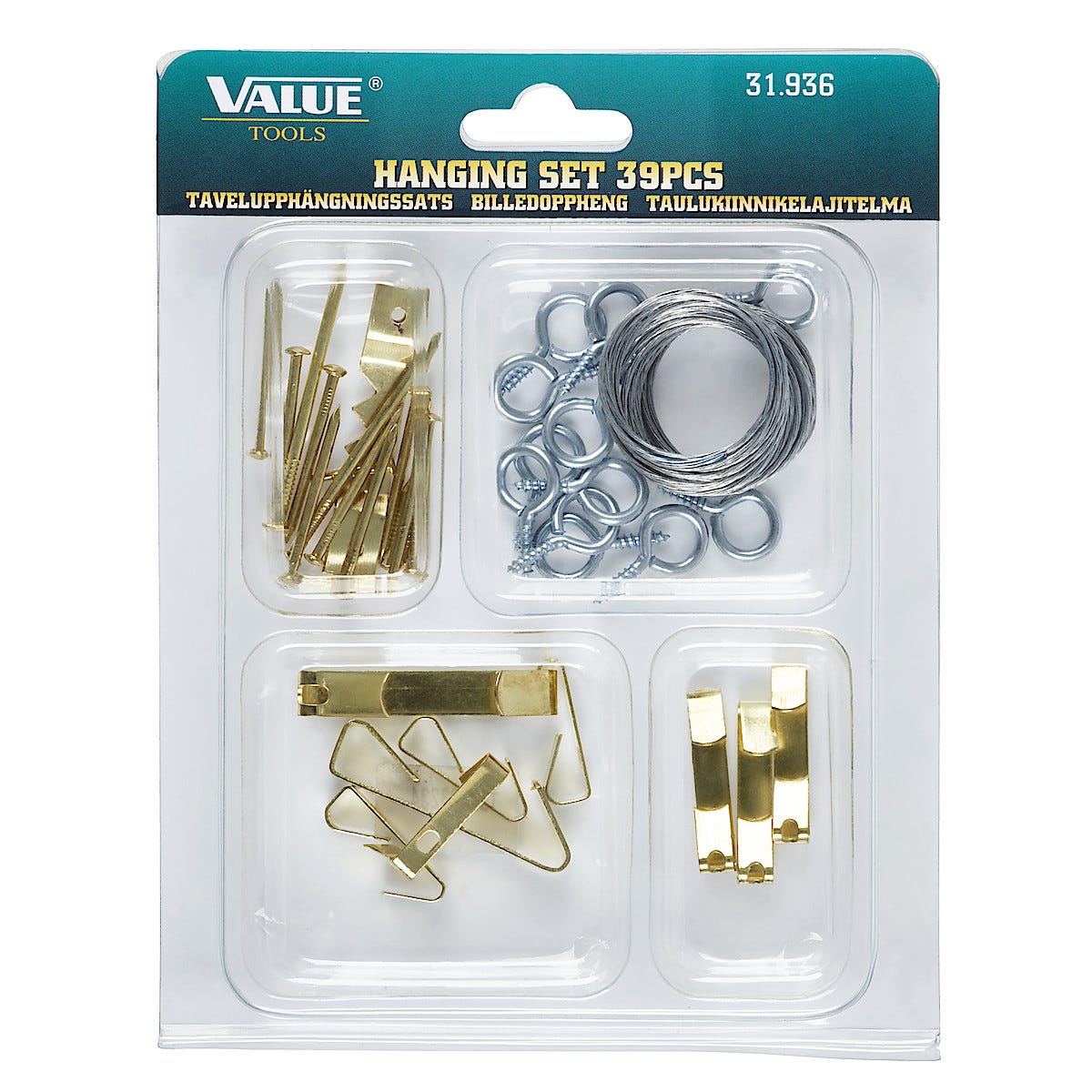• Innehåller allt du behöver för att hänga upp tavlor, fotografier m.m.