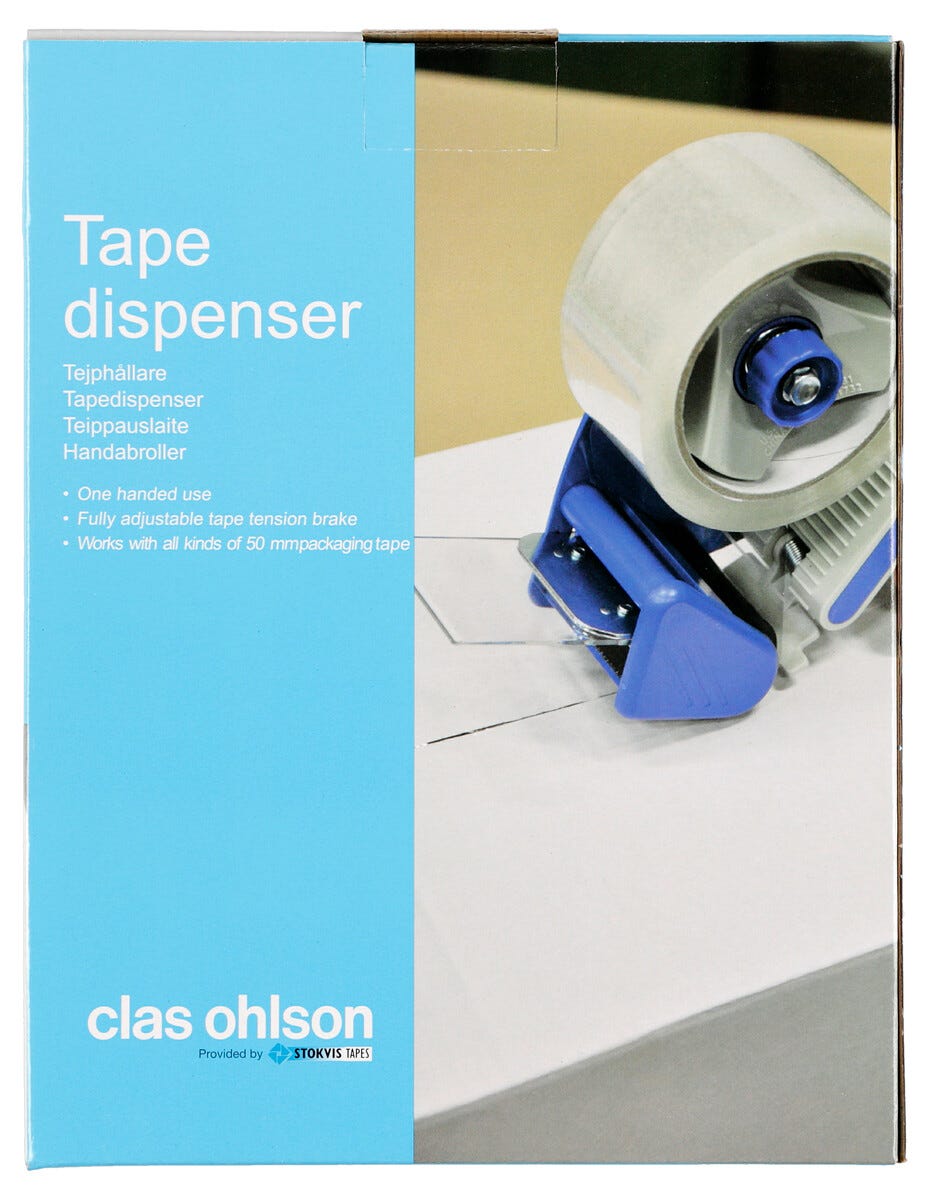 • Med en hållare till tejpen går det snabbt och enkelt att paketera olika produkter.