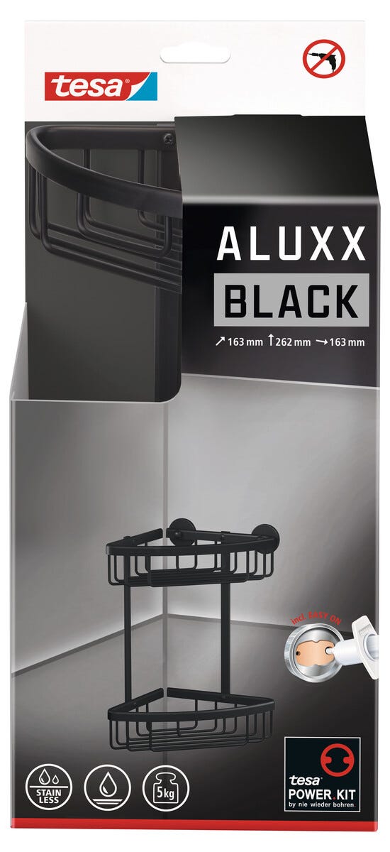 Tesa Aluxx dubbel hörnkorg självhäftande, svart