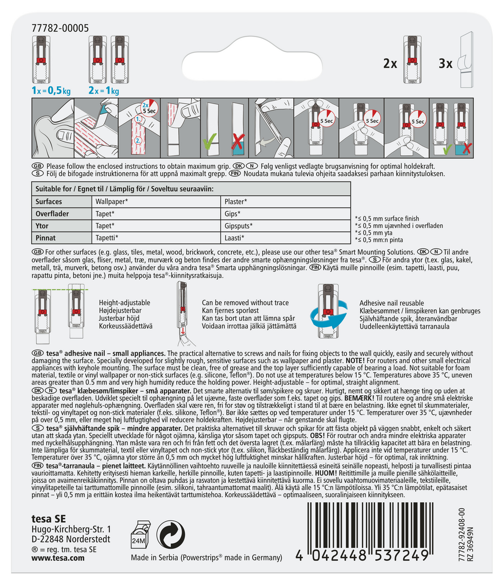 • Smart, självhäftande spik som är justerbar i både höjd- och sidled.