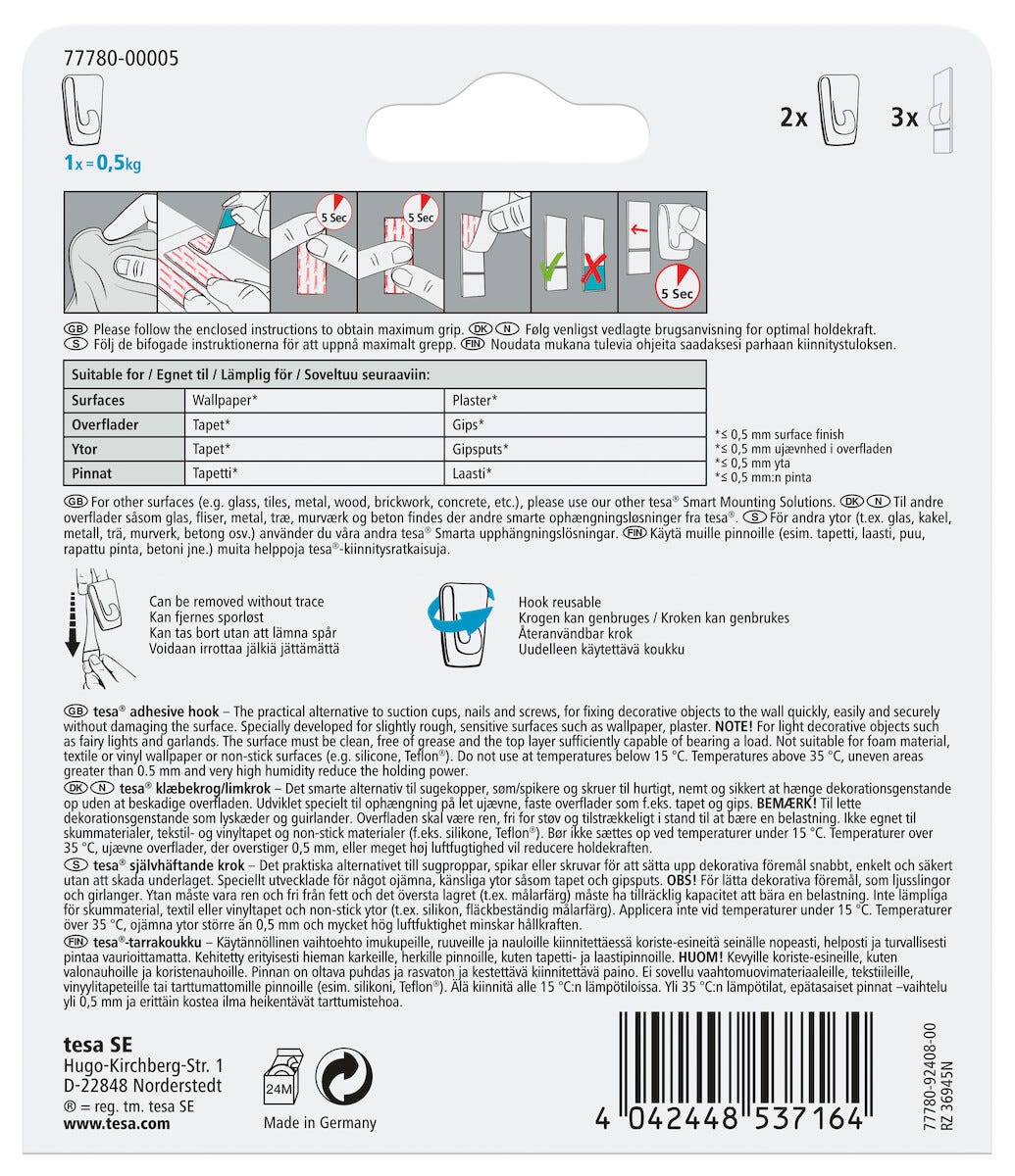 Tesa självhäftande krok, 2-pack