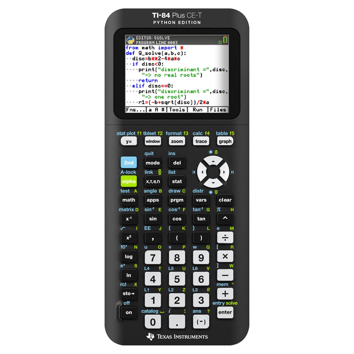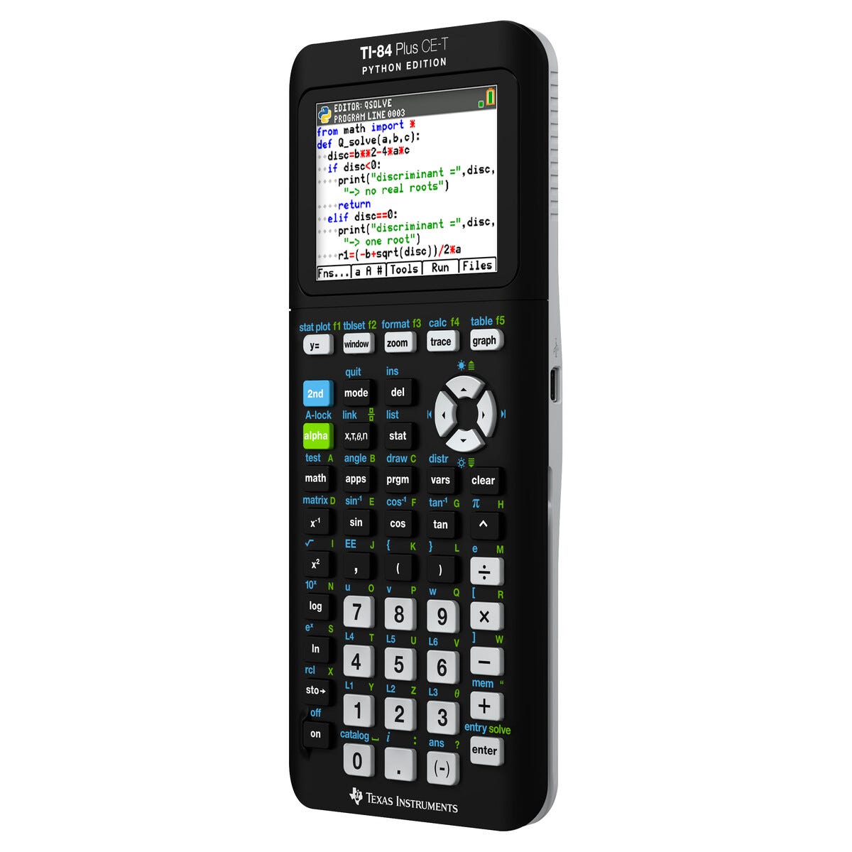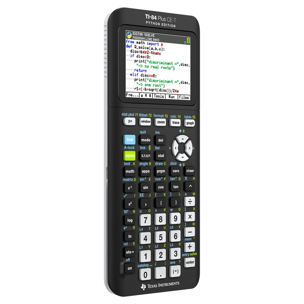 • TI-84 Plus CE-T visar grafer i färg och kör Python direkt.