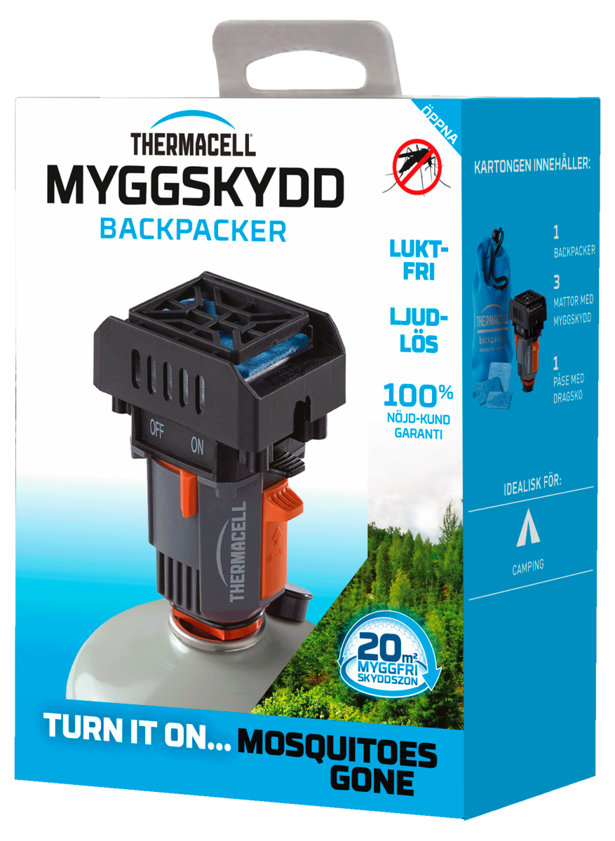 • Thermacell Backpacker – bärbart, luktfritt och ljudlöst skydd mot mygg och knott.