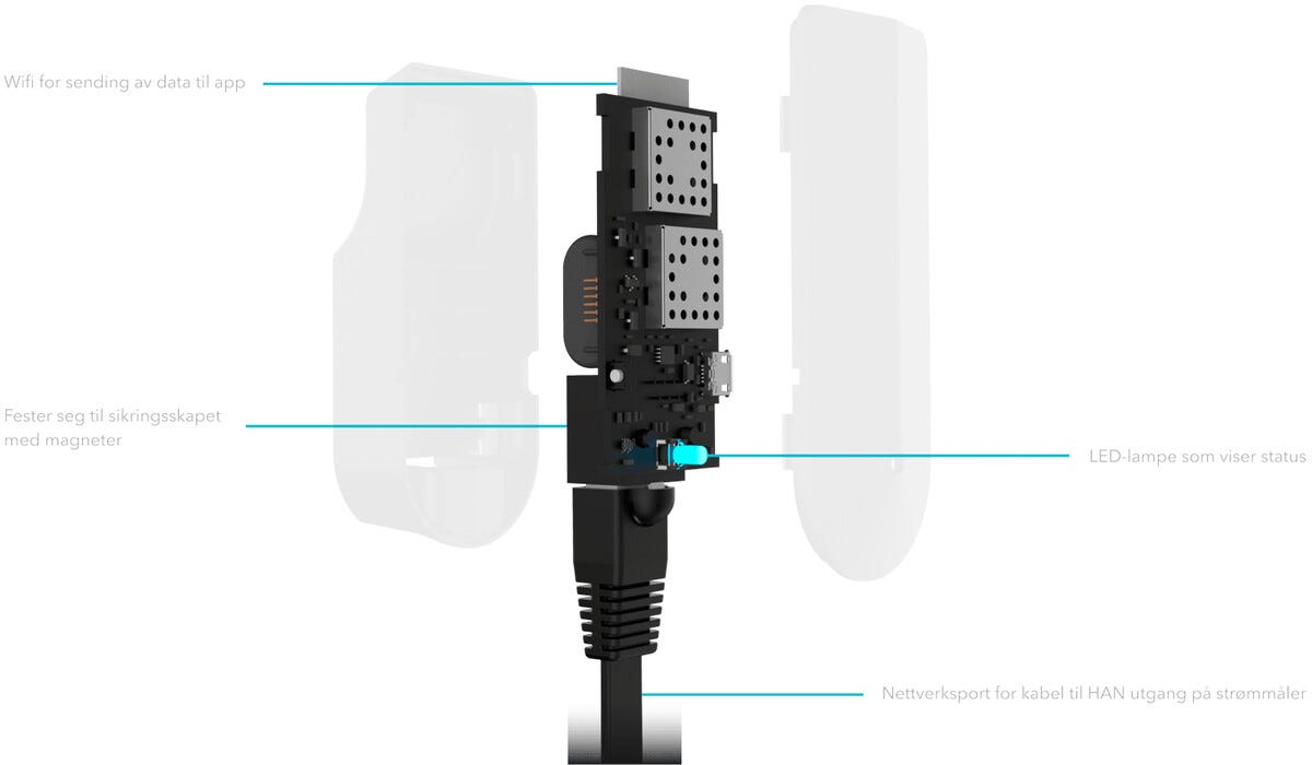• Kopplas till elmätarens HAN-port. Styr i appen via ditt WiFi.