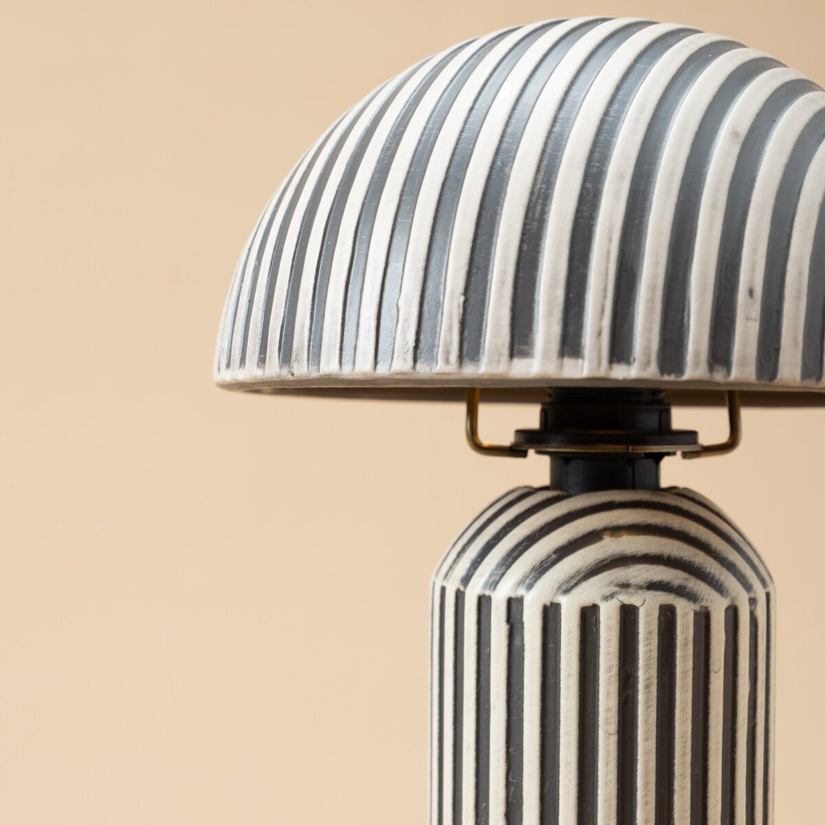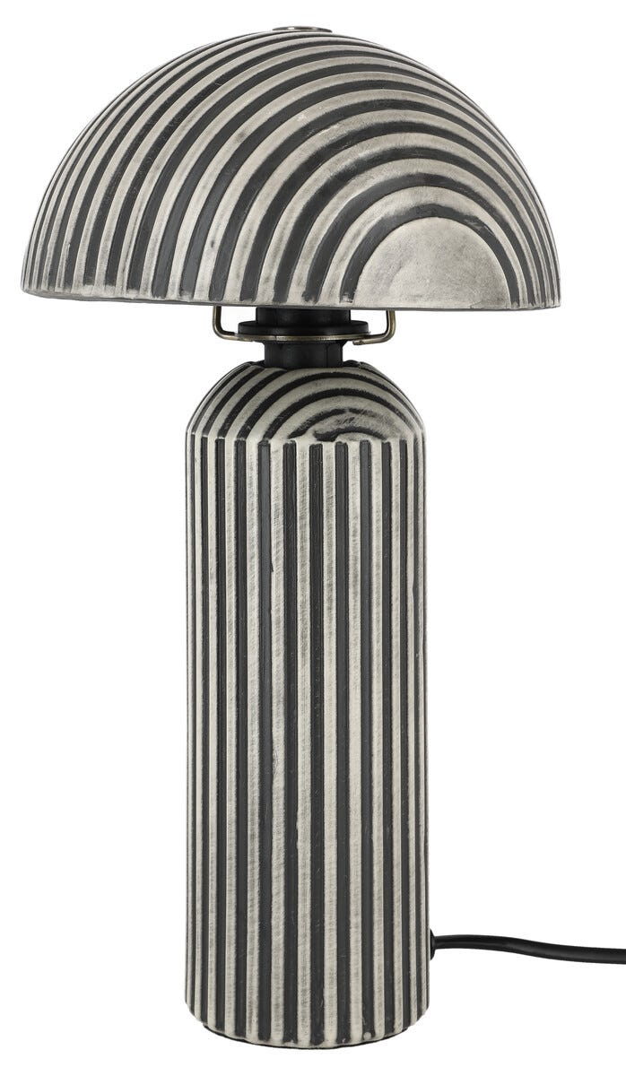 • Kaxig, randig bordslampa med nedåtriktat ljus – ett blickfång i hemmet.