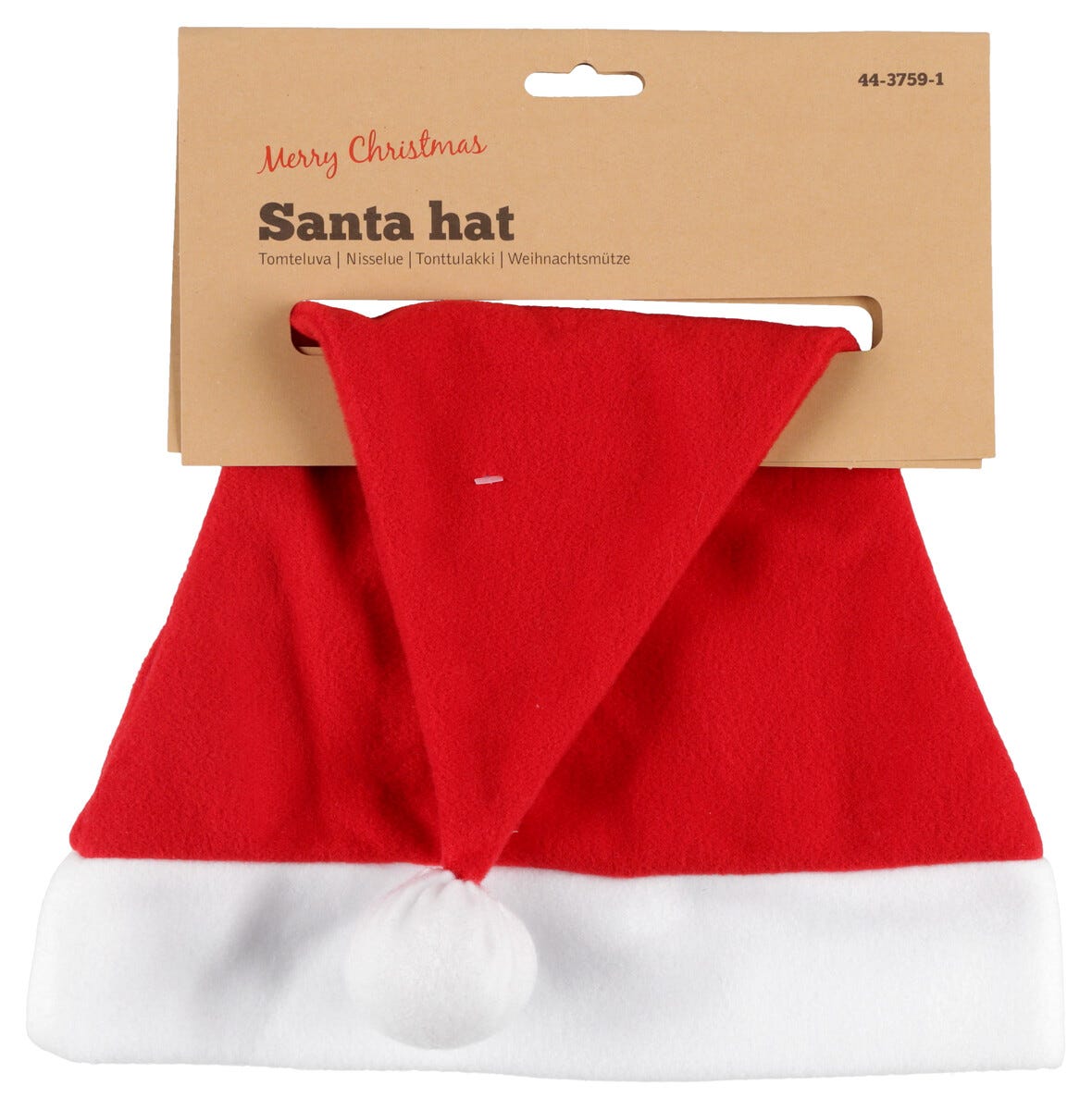 • Röd luva med vit fluffig kant och tofs för den rätta julkänslan.