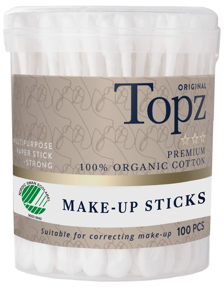 • Topz Make Up Sticks bomullspinnar 100-pack – av papper och 100 % ekologisk bomull.