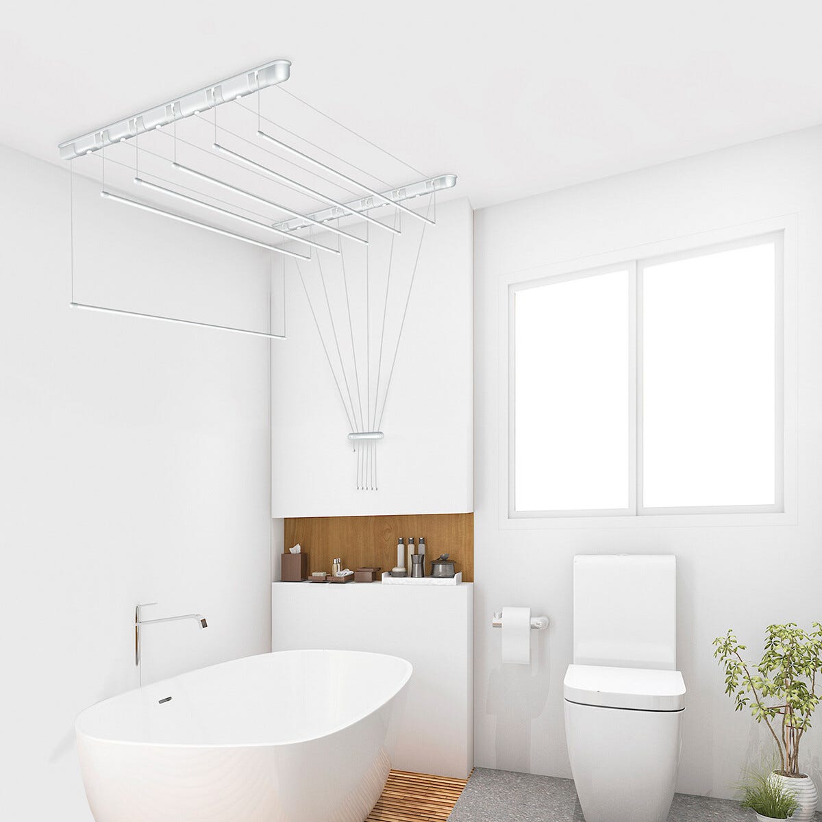• Få plats med tvätt på liten yta – torkhiss med 6 torkpinnar.