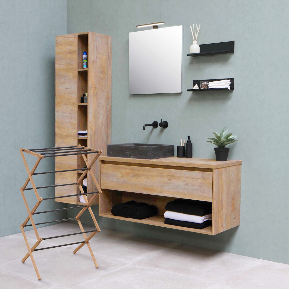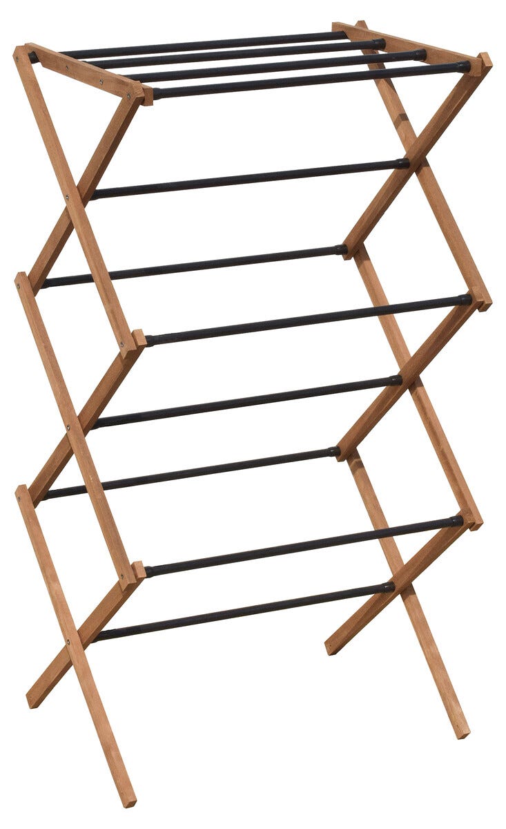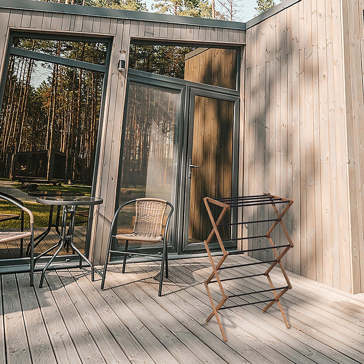• Torkställning i vädertåligt askträ och metall – runda metallrör förhindrar torkveck.