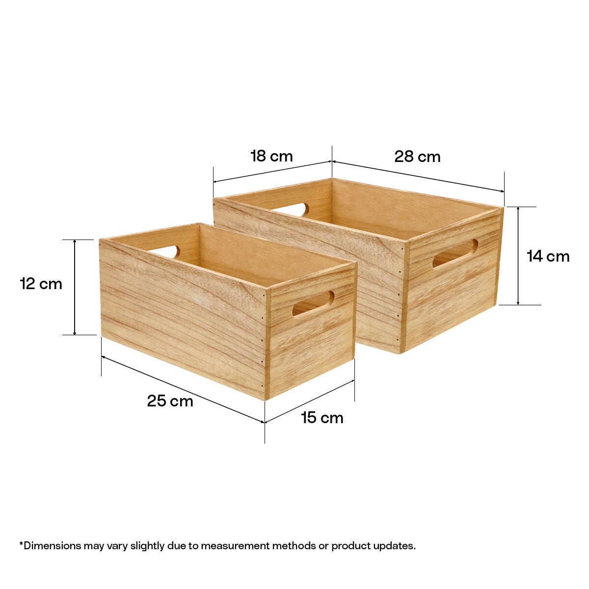 Trälådor med handtag, 2-pack