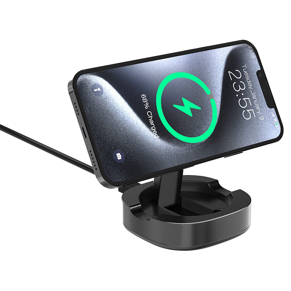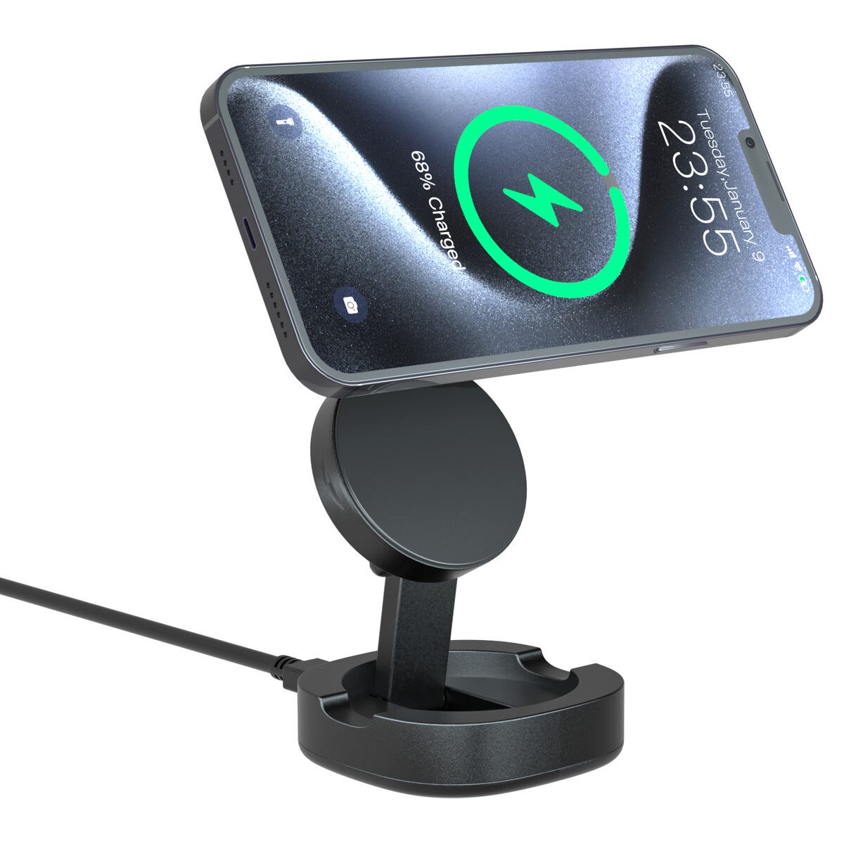 Den vikbara designen gör laddaren smidig att ta med och förvara. Magnetisk anpassning ger stabil laddning för iPhone 12 och nyare modeller. Laddar även TWS-hörlurar med Qi-stöd.
