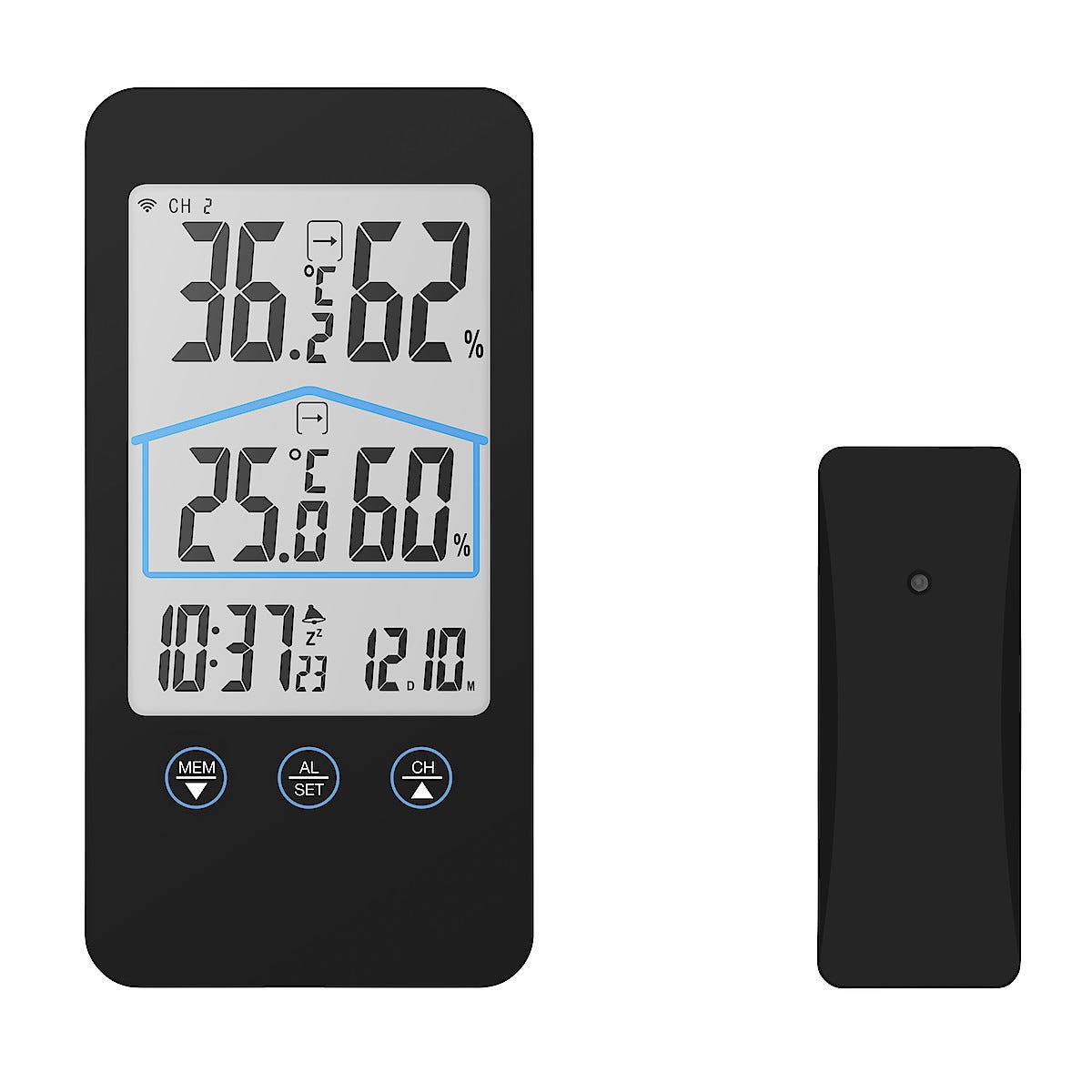 • Trådlös mätning av temperatur och luftfuktighet.