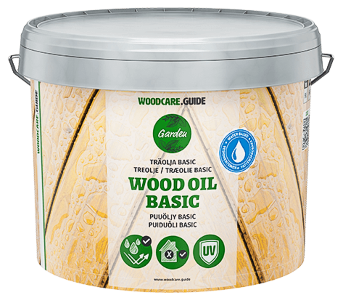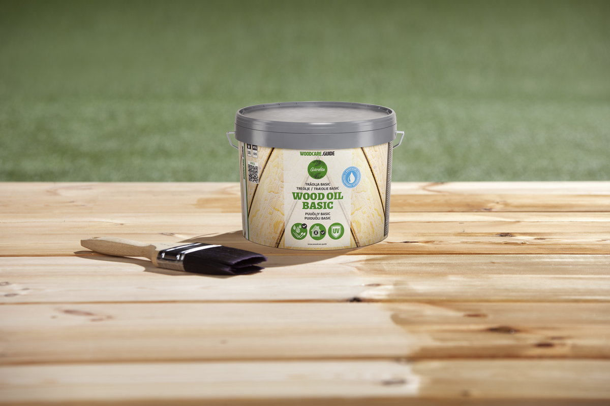 • Träolja Woodcare.guide Basic – ger en vattenavvisande yta och bevarar träets struktur.