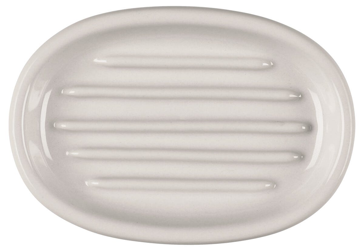 • Tvålkopp i stengods med matt beige finish till handfatet eller duschen.