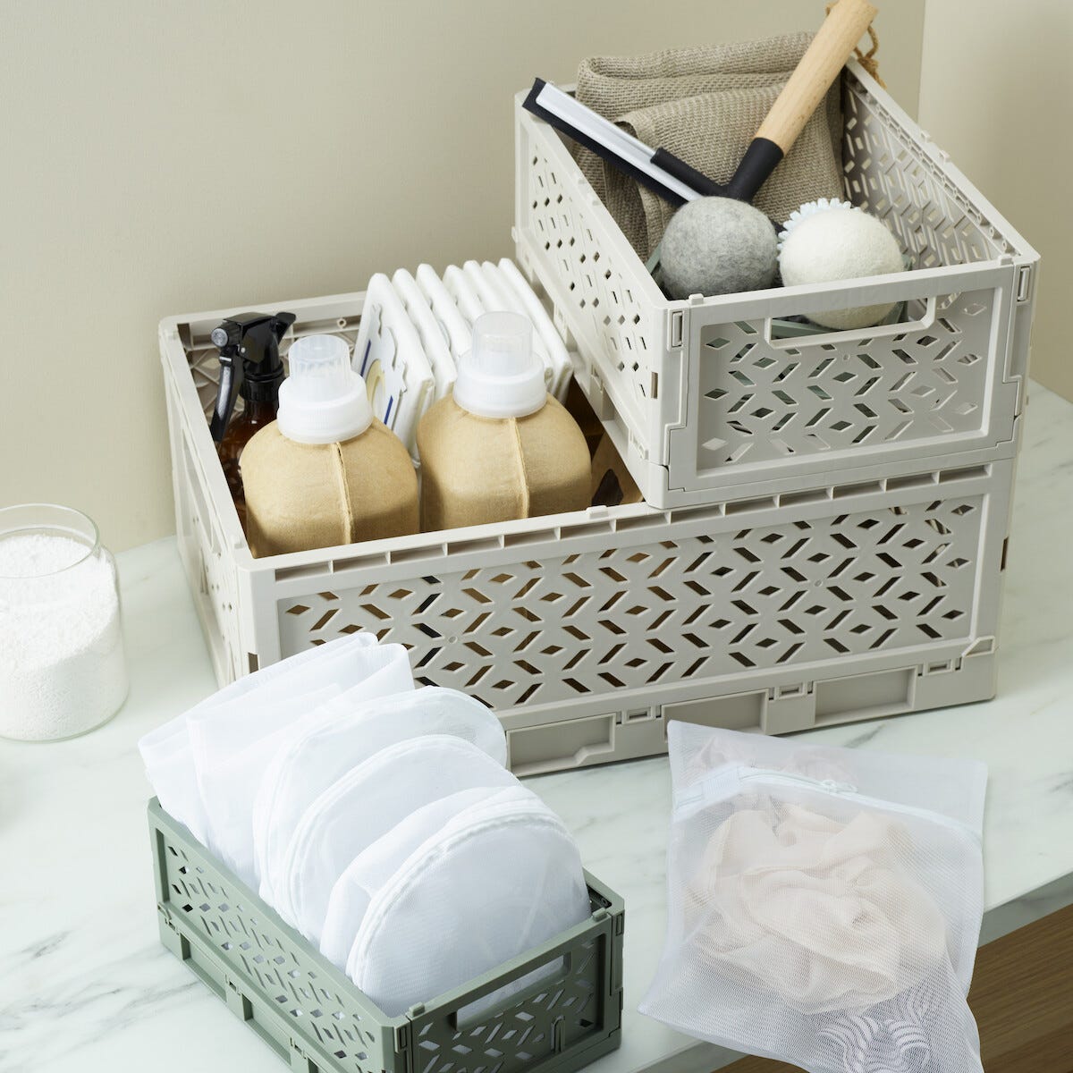• Praktiskt set med tvättpåsar för allt från bh till strumpor, underkläder och skor.
