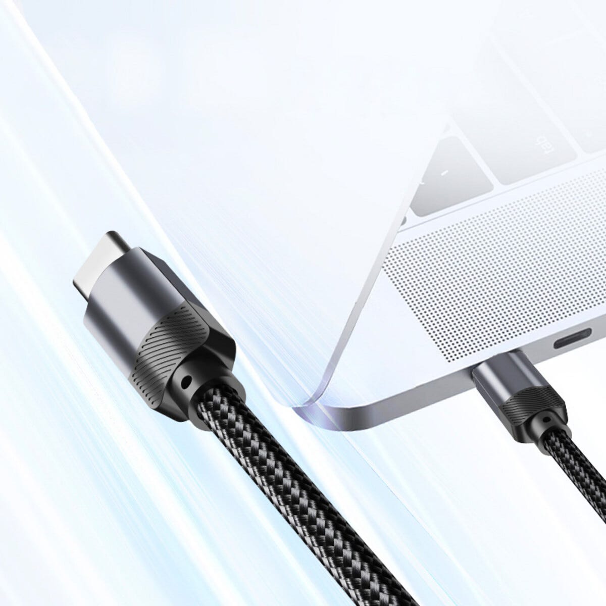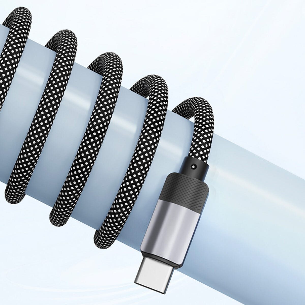 • Stilren och slitstark tygklädd USB-C ladd- och synkkabel.