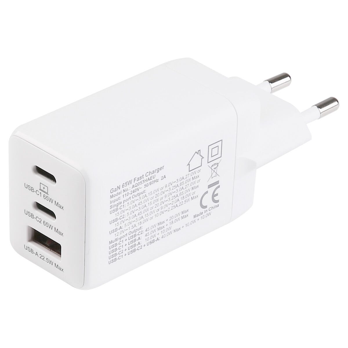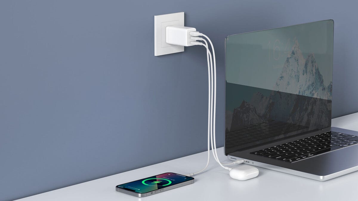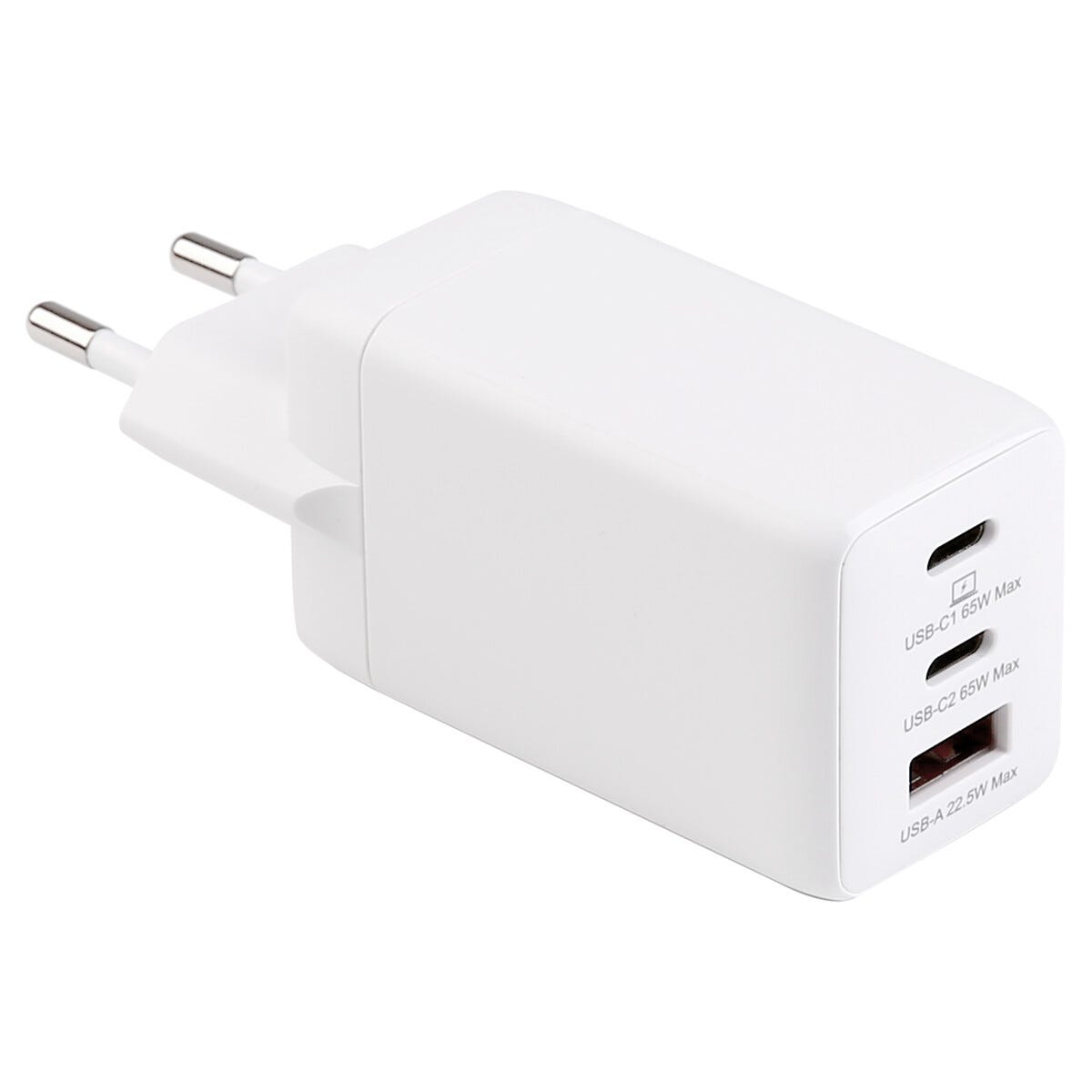 • Kraftfull GaN-väggladdare med två USB-C och en USB-A port.
