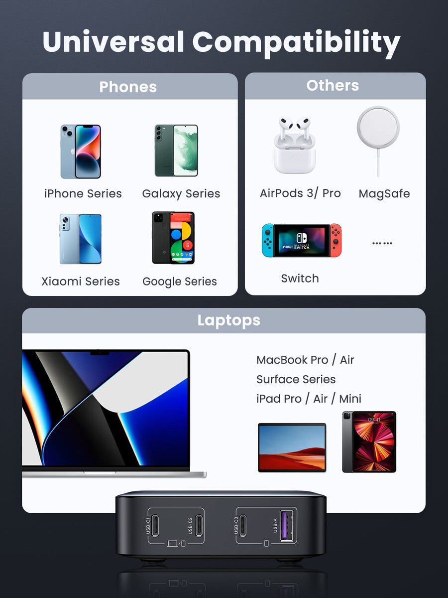 • Ugreen Nexode 100 W GaN desktop charger – ladda 4 enheter samtidigt.