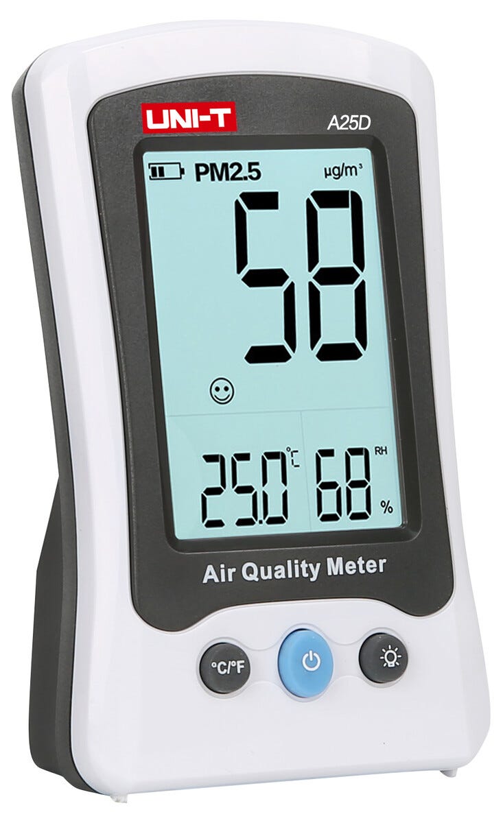 • Uni-T A25D – luftkvalitetsmätare med tydlig visning med emojis.