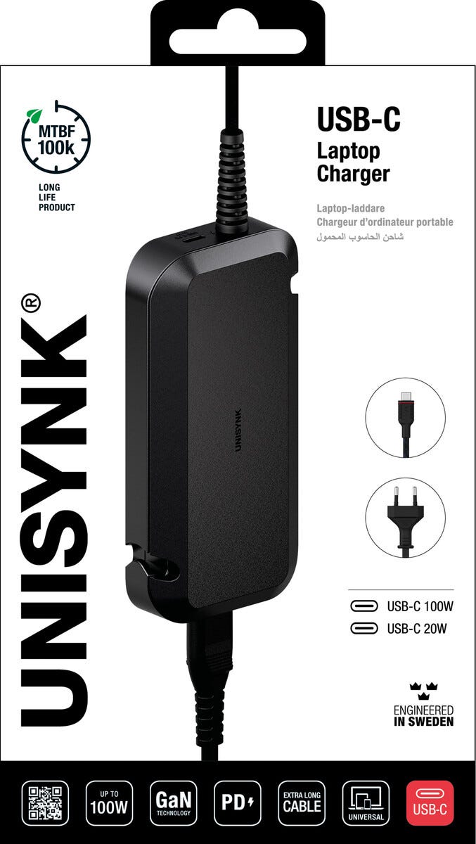 • Unisynk USB-C laddare – 100 W snabbladdning för laptop, mobil eller surfplatta.