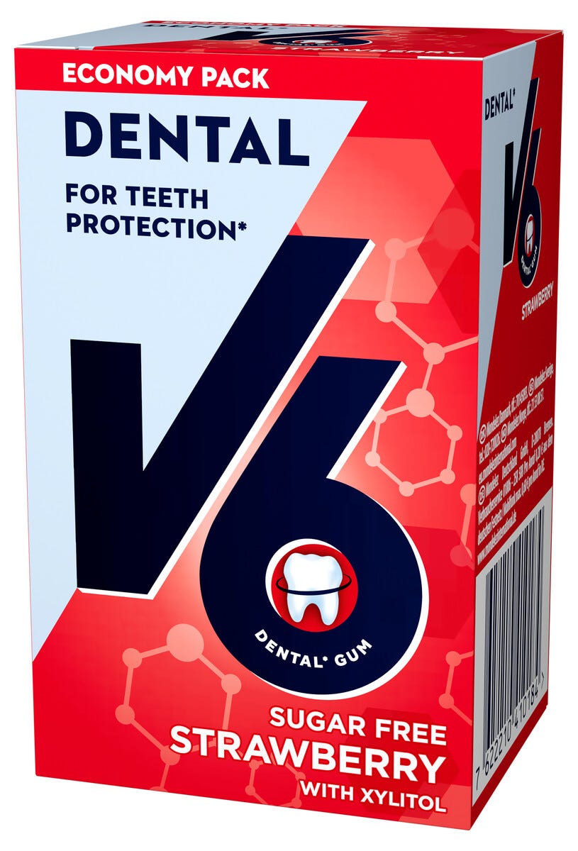 V6 Dental Care Strawberry tuggummi sockerfri, 70 g